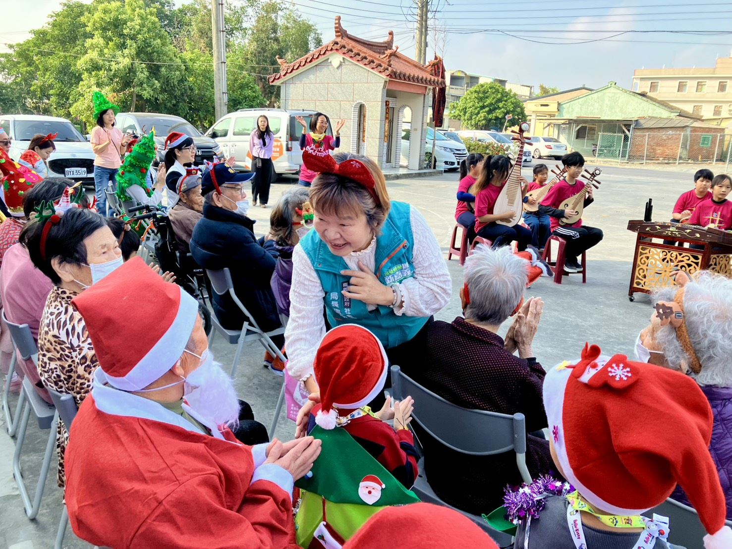 保康基金會附設保康日照機構與嘉義縣警察局職場互助教保服務中心共同舉辦「叮叮噹響社區・聖誕共融行動」活動,太保市長鄭淑分、嘉義縣社會局長張翠瑤、保康基金會執行長黃秀珍等貴賓帶領日照長輩、安東國小及警察局職場互助教保中心學童走進社區發送手工餅乾與聖誕卡,為街頭帶來祝福與笑容。