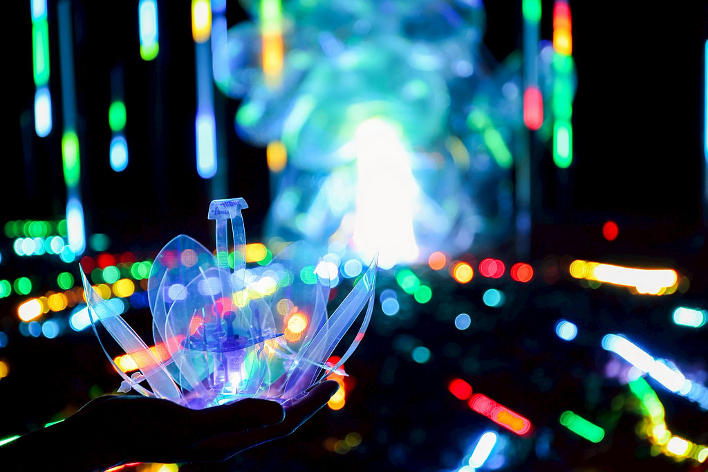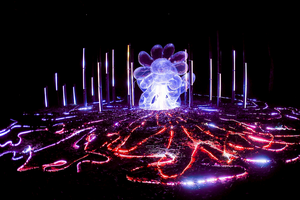 十四組藝術創作,完整呈現藍、紫交織的絢麗視覺效果,被譽為彷彿走進「阿凡達」世界,令人讚嘆。