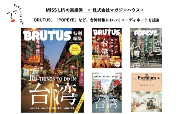 於《BRUTUS》《POPEYE》等台灣特集中擔任企劃統籌與在地協調工作。