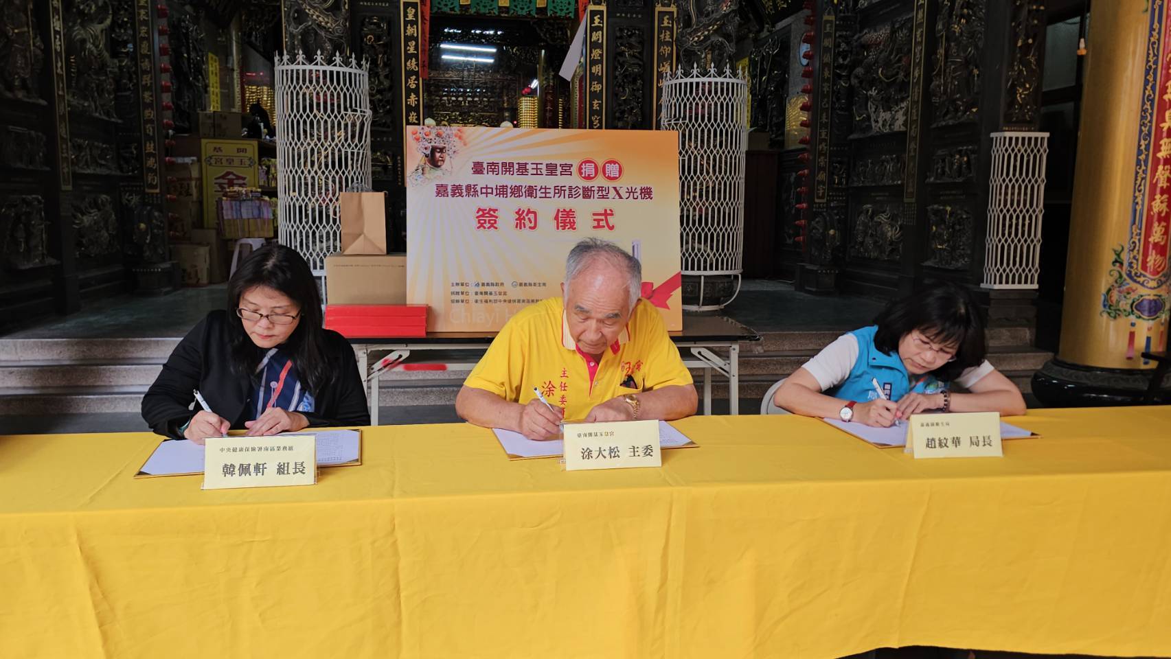 為提升偏鄉醫療可近性,嘉縣衛生局與健保署南區業務組攜手,向臺南開基玉皇宮勸募1台價值200萬元「高頻式診斷型X光機(DK Accuray 525R)」捐贈中埔鄉衛生所,今29日下午在健保署韓佩軒組長見證下,衛生局長趙紋華、玉皇宮主委涂大松共同簽署備忘錄,見證這一刻。