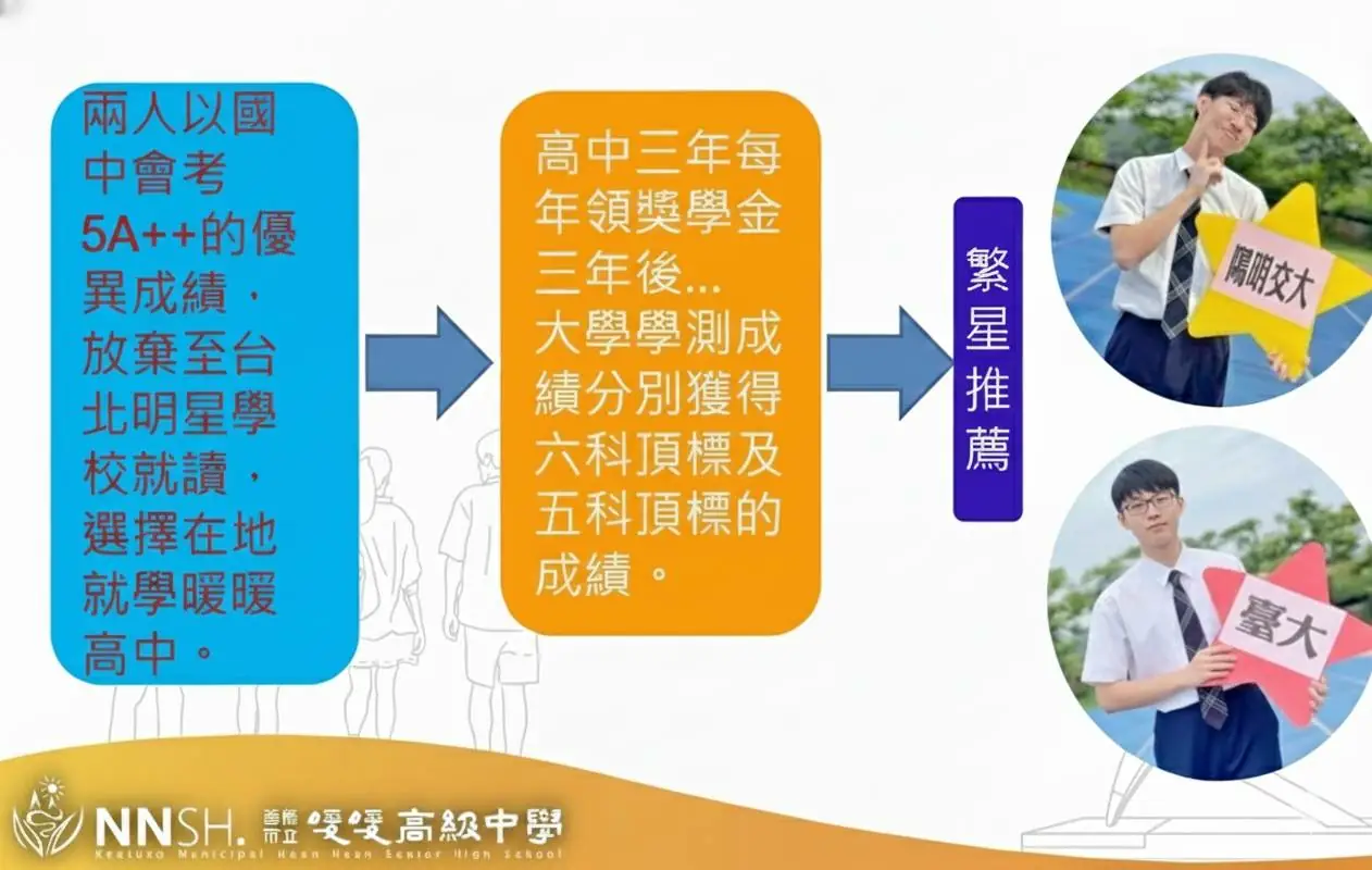此外,基隆高中數理班學生王同學的故事,更凸顯在地教育資源與師長陪伴的重要性。王同學來自中低收入戶,在師長鼓勵下逐漸養成不放棄的志氣。高中期間,他積極參與各類拔尖課程,取得國際數學競賽銀牌、台灣人文獎全國首獎及全國水下機器人比賽佳作等優異成績,學業維持全校前1%。最終,他同時錄取台大生物環境系統工程學系與清華大學。