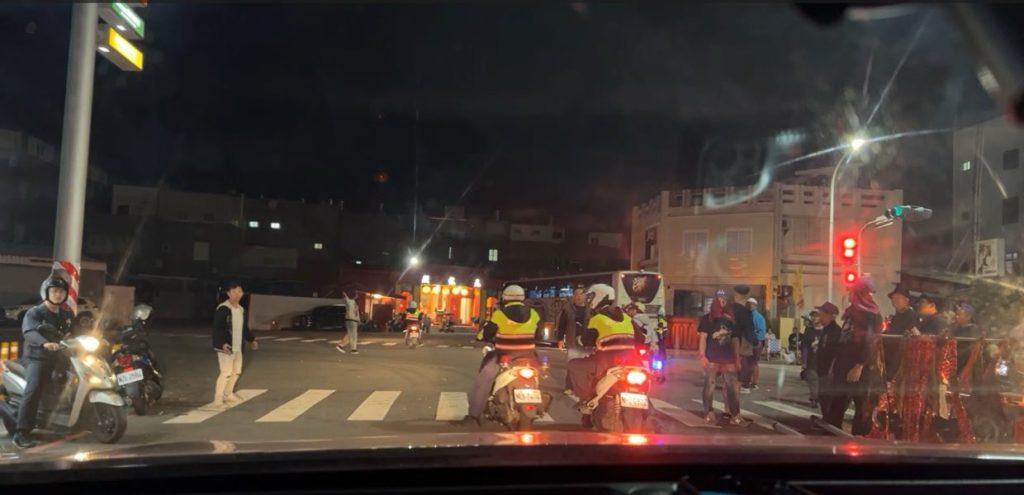 員警了解情形後,立即透過無線電請求線上警力支援開道,隨後,該名男子與妻子將幼童抱至警車上,警方隨即載送一家人前往醫院,同時由騎乘機車之員警沿途協助引導開道。當時遶境活動沿線人車眾多,在警方協助下迅速開闢通行空間,爭取送醫時間。