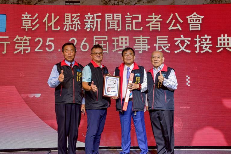在理事長交接儀式中,由彰化縣政府機要秘書張建豐代表縣府親自監交,並於典禮中頒發第26屆理事長當選證書,象徵縣府對彰化縣新聞記者公會的高度重視與肯定。