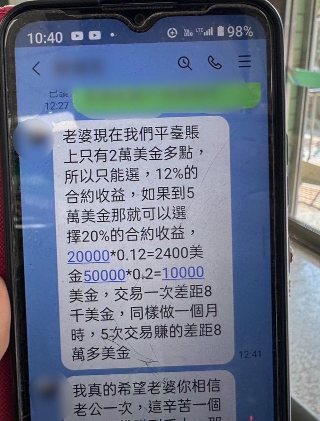 經了解,柯女獨居生活,因感到孤單而遭詐騙集團鎖定,對方透過LINE主動加好友,以噓寒問暖方式建立信任關係,並逐步發展為感情交往,雙方互稱夫妻。詐騙集團隨後以「投資理財可改善生活品質」為由,要求柯女提供大筆資金,並教唆其謊稱房屋整修及轉交女兒使用,藉此解除定期存款;警方檢視其對話紀錄後,確認為典型感情詐騙手法,隨即聯繫其家屬到場共同勸說,並協助柯女封鎖及刪除詐騙帳號,避免再度受害。