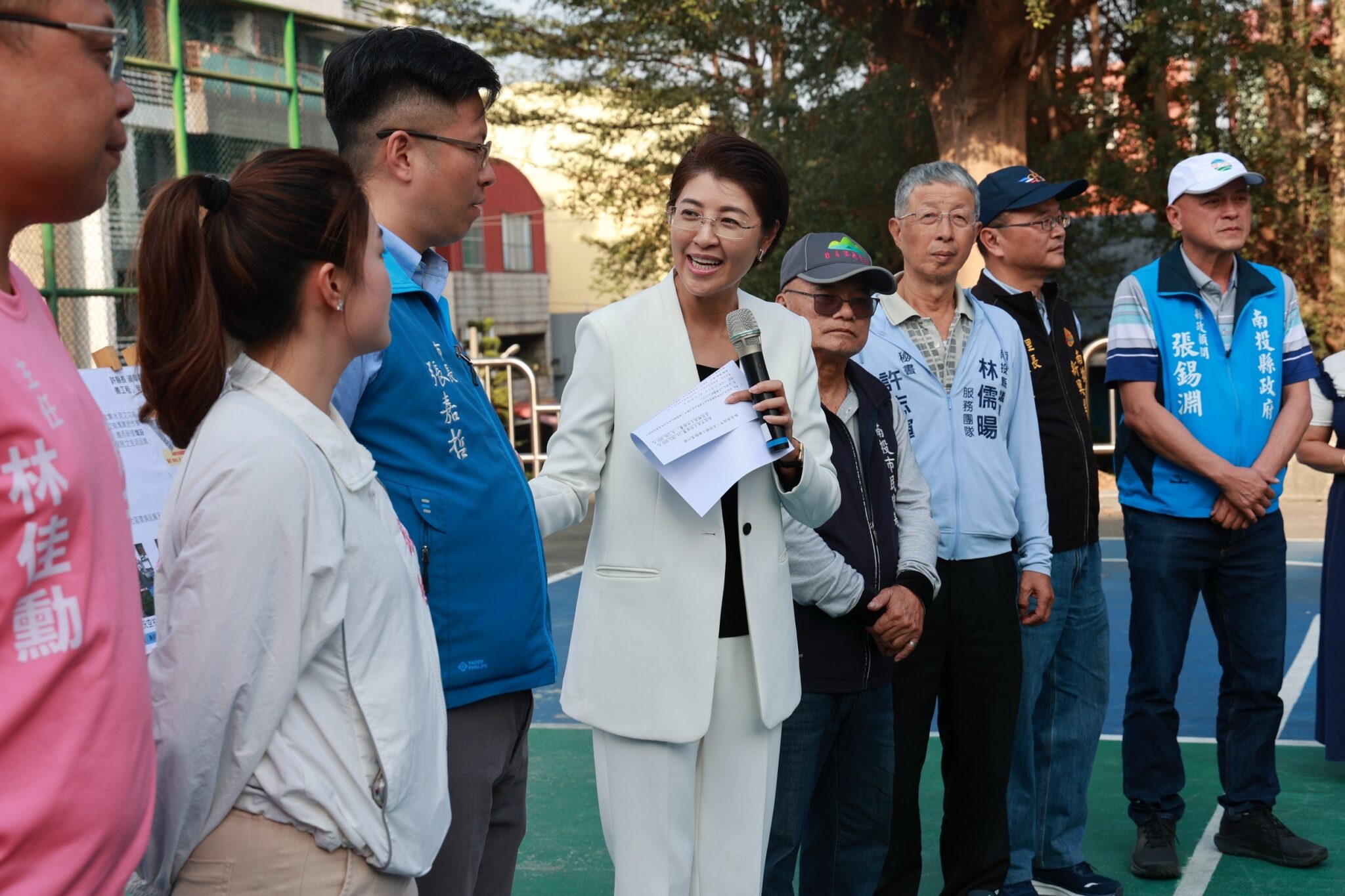許淑華縣長下午先赴南投市,分別由南投市長張嘉哲、縣議員張婉慈、張秀枝、社區理事長陪同會勘。