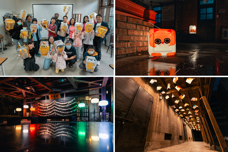 活動現場亦安排了燈飾成果展示,呈現各館舍因應自身場域特色所發展的創作形式。中平路故事館以守護獸角色延伸燈光造景,展現年輕世代的城市想像;楊梅故事園區將居民家中閒置菜刀轉化為書本造型燈具,結合「廚房記憶」故事,映照地方生活情感;太武新村眷村文化園區以孩童彩繪與回收材質打造三花貓燈飾,呈現共生共榮的溫暖光景;米倉劇場則邀請日本藝術家鈴木泰人,以再生紙燈罩與居民故事構築夜間「無人劇場」,展現老城區獨有的靜謐氛圍。
