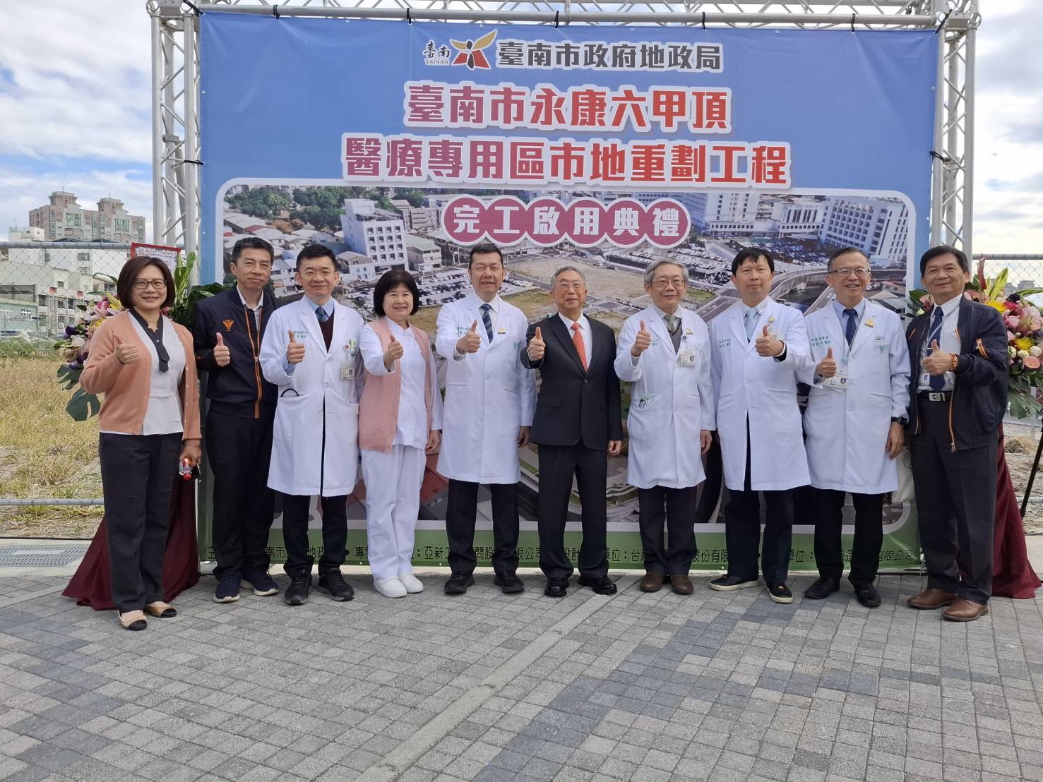 【焦點時報/記者蔡宗憲報導】「臺南市永康六甲頂醫療專用區市地重劃工程」自112年3月開工,歷經兩年半工期如期完工。總開發面積4.093公頃,開發後提供住宅區土地1.382公頃、醫療專用區土地1.258公頃,以及公園、廣場、綠地、道路等公共設施用地1.453公頃。未來結合奇美醫院現有院區的後續開發,將提升整體醫療服務水準,並帶動永康甲頂地區發展,前景備受期待。南市府於今(29)日舉行啟用典禮,市長黃偉哲偕同奇美醫療財團法人董事會董事長許春華、奇美醫院院長林宏榮及醫療團隊,與立委陳亭妃、議員楊中成、林燕祝、陳秋萍、李鎮國、黃肇輝、朱正軒、林冠維、沈震東、永康區長李皇興、里長等各界民意代表共同剪綵,宣布重劃區正式啟用。