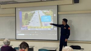 交通警察隊現場以高齡者違規穿越車道、不遵守號誌及服用藥物後影響駕車安全等實際事故案例影像進行生動的解說,讓現場高齡學員印象深刻,另提醒高齡者於晨昏外出運動時應遵守號誌及走行穿線,並應穿著亮色衣物或佩戴反光物件,以提高自身能見度讓駕駛看見而降低事故,希望持續宣導「車輛慢看停、行人安全行」,共同營造基隆市成為高齡者最友善的城市。
