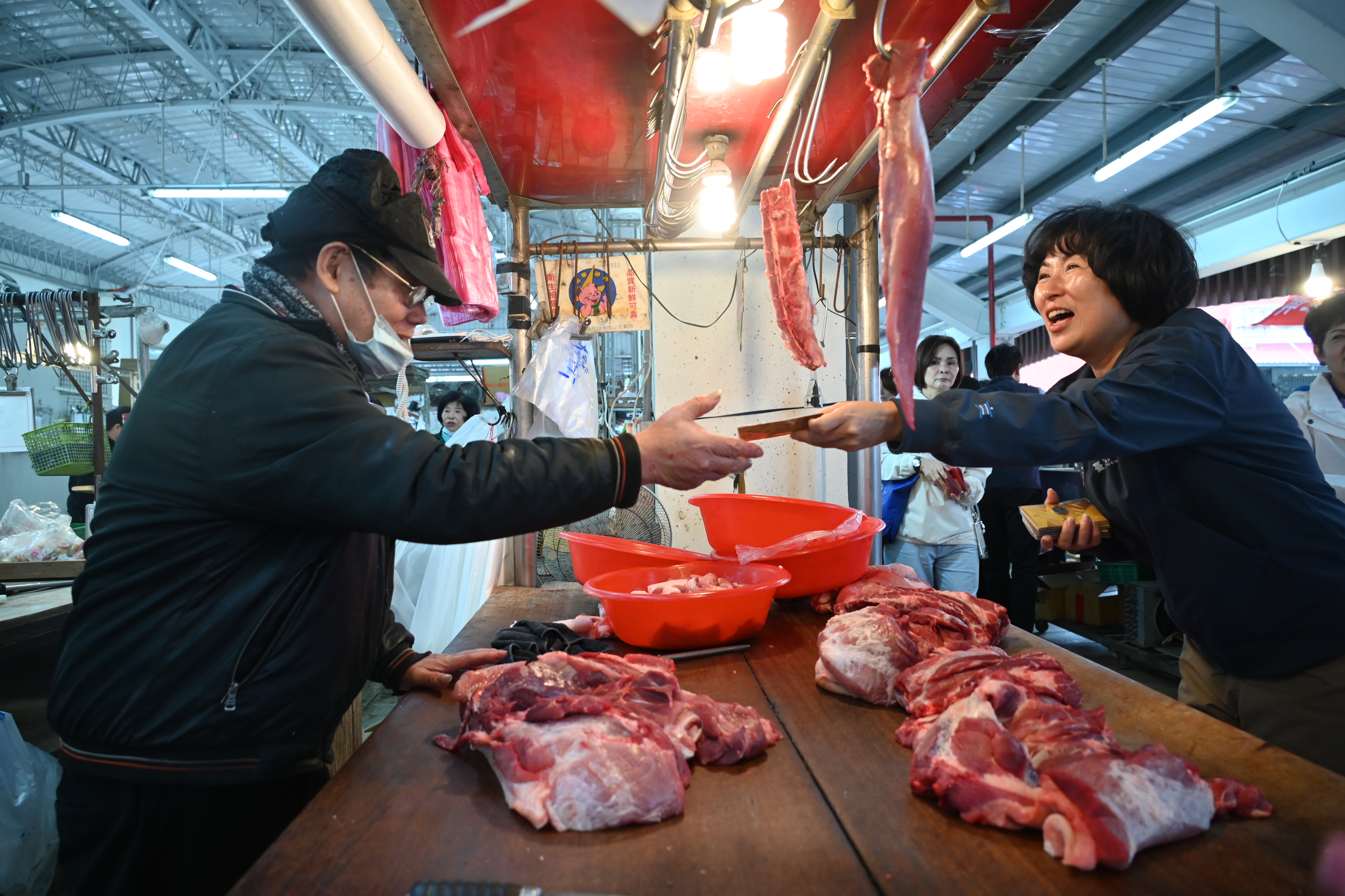 清晨至果菜市場拜年 縣長饒慶鈴向攤商與民眾祝賀馬啟新歲