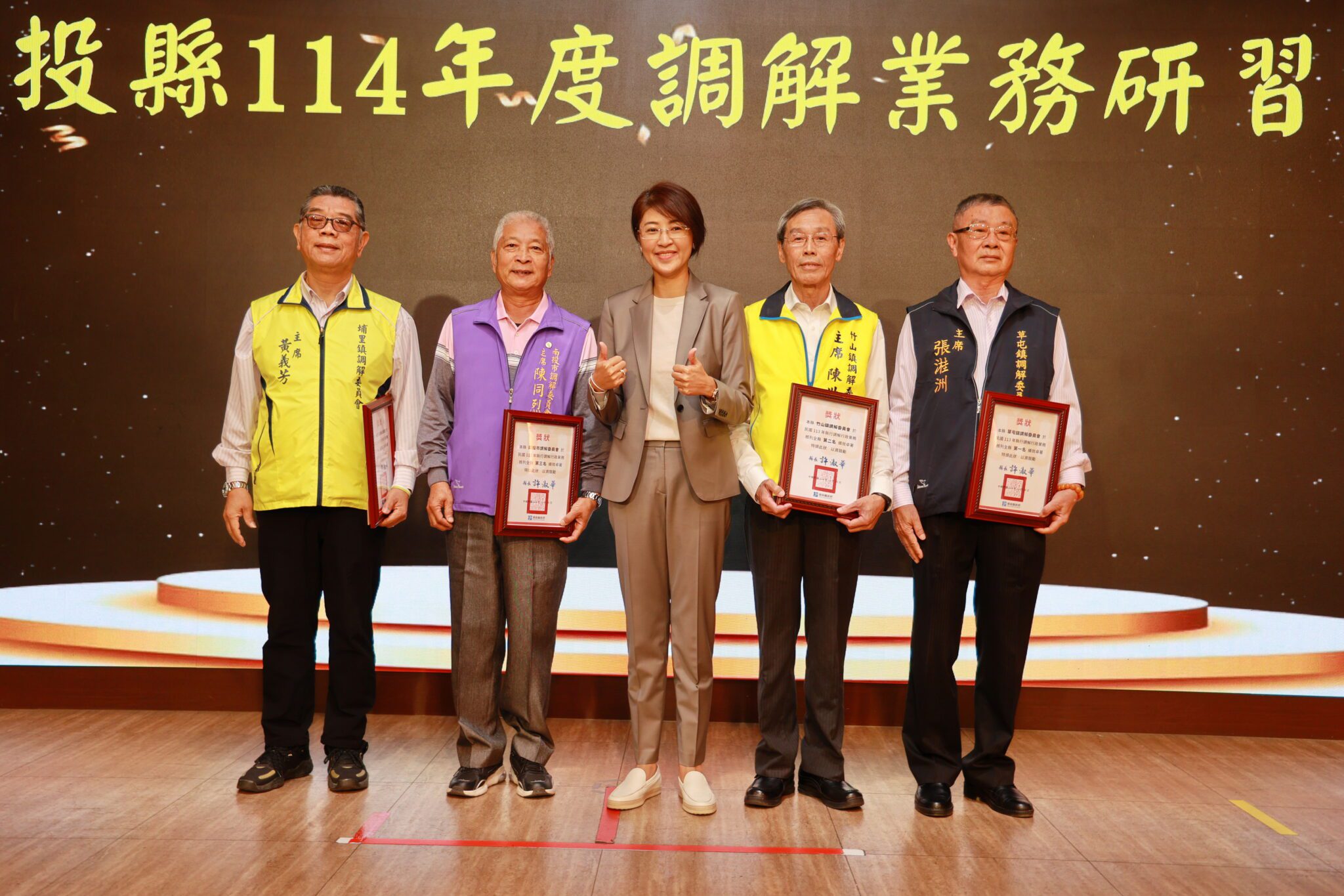 南投縣政府於12月16日在南投市南島婚宴會館舉辦「南投縣114年調解業務研習會」,縣長許淑華主持開幕並致詞,同時頒獎表揚績優調解行政單位及人員,肯定調解委員為地方排紛解難的貢獻。