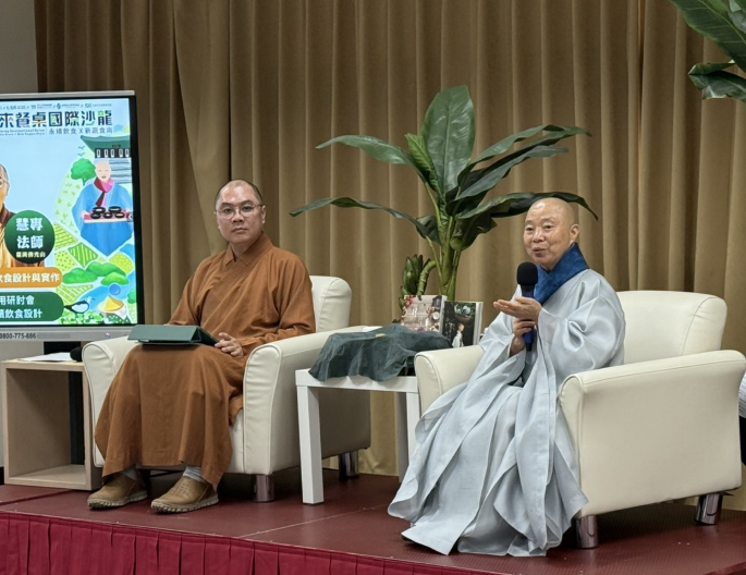 會議特邀韓國白羊寺正寬法師進行專題示範演講,分享「禪食與永續」的國際觀點,並由佛光山慧專法師與談,從文化與教育實踐層面探討飲食與永續發展的精神連結。正寬法師曾以「禪食廚師」之姿登上Netflix《主廚的餐桌》,並於2022年榮獲亞洲五十最佳餐廳標誌人物獎(Icon Award, Asia’s 50 Best Restaurants),其以「尊重自然、回歸純淨」的料理哲學,展現永續飲食的跨文化價值。
