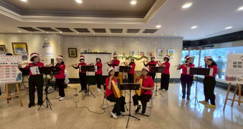 活動由醫療副院長蔡青陽親臨現場致詞揭開序幕,在祝福聲中,悠揚樂音緩緩響起。「高雄市夢幻長笛樂團」以清新柔和的旋律,為現場營造溫暖而寧靜的聖誕氛圍;接續登台的「小星心陶笛樂團」,以充滿童趣與創意的演出,將純真喜悅帶給在場每一位民眾,現場洋溢歡笑與感動。