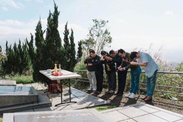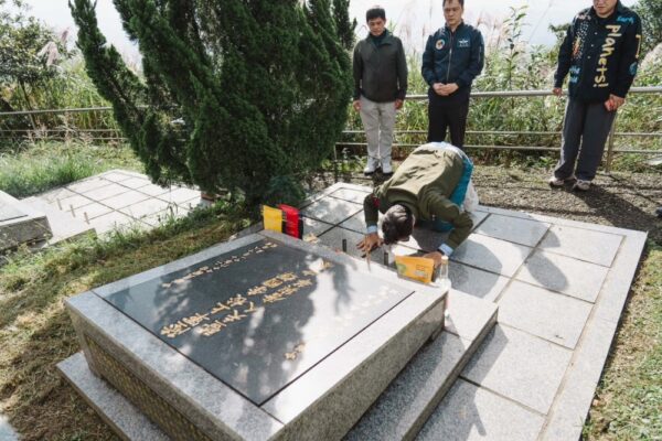 圖:「一香兩代情」 孤軍後代淚灑柯俊雄原型墓前,司徒建銘不畏禁忌紀錄歷史。(圖/王紹章會長提供)