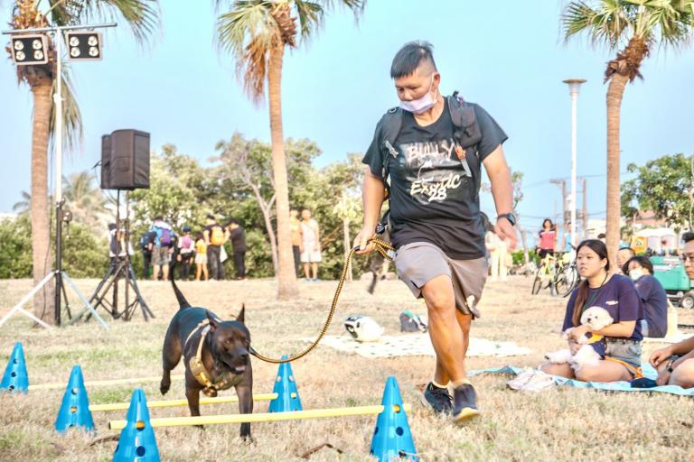 ▲林園海洋濕地公園草地派對現場,民眾與毛孩一同參與「毛起來玩」互動遊戲,氣氛熱鬧。(圖/觀光局提供)