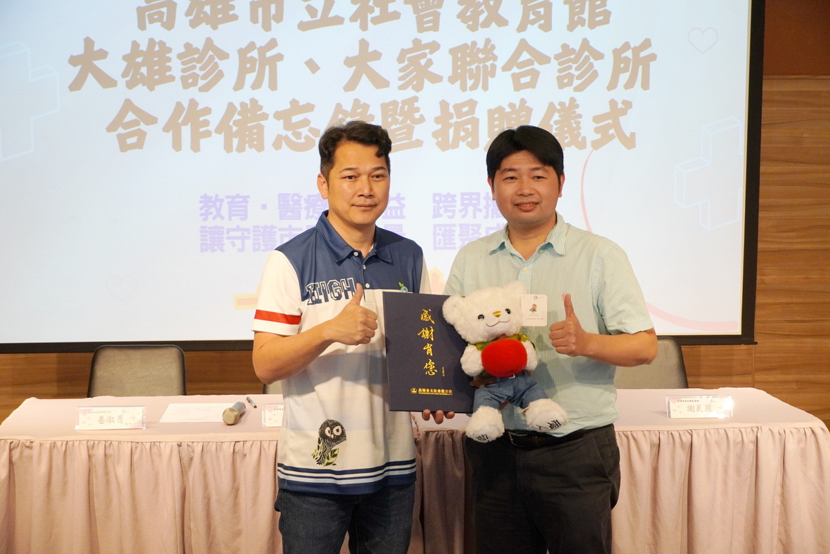 這場簽約儀式不僅是一份合作,更是一場公益與良善的連結。當「大雄」遇上「平安熊」,那份守護健康、傳遞幸福的心意,就在高雄這座城市溫柔蔓延。未來,社教館將持續積極連結企業、醫療與教育界,努力邁向幸福城市,讓善的循環持續發光,讓社會更祥和與穩定。(圖/記者黃和昇翻攝)