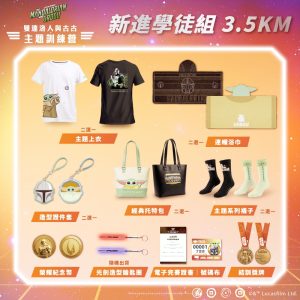 「3.5K新進學徒組」與「10K賞金獵人組」皆採全程晶片計時,成績即時上傳。10K 組別特別設有總排名獎金,凡獲得男女組前 5 名之選手,除獎金外,另可再獲得一座《曼達洛人與古古》主題特製規格獎盃。獎盃以《我輩之道》為核心精神,透過透光壓克力呈現曼達洛人與古古主題形象,搭配溫潤木質底座,展現獨特的光影層次與收藏質感。