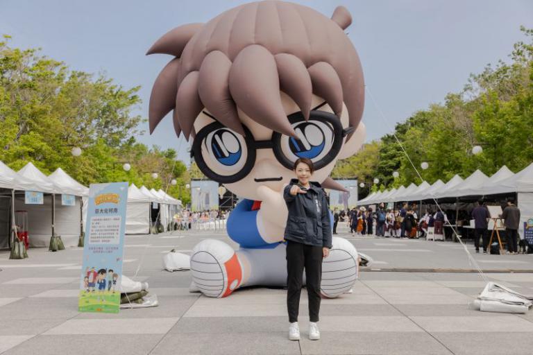 高市長表示,竹市兒童遊藝節每年以不同的主題,於兒童節連假打造豐富的樂園活動;去年創下36.5萬參與人次,民眾回饋滿意度達9成以上,更獲得8項國際大獎肯定。今年兒藝節全新升級,與「名偵探柯南」合作,打造4.5公尺的「巨大化柯南」於孔廟廣場,以及全新製作的柯南道具大型裝置等,皆是全台首度亮相,請民眾務必不要錯過。