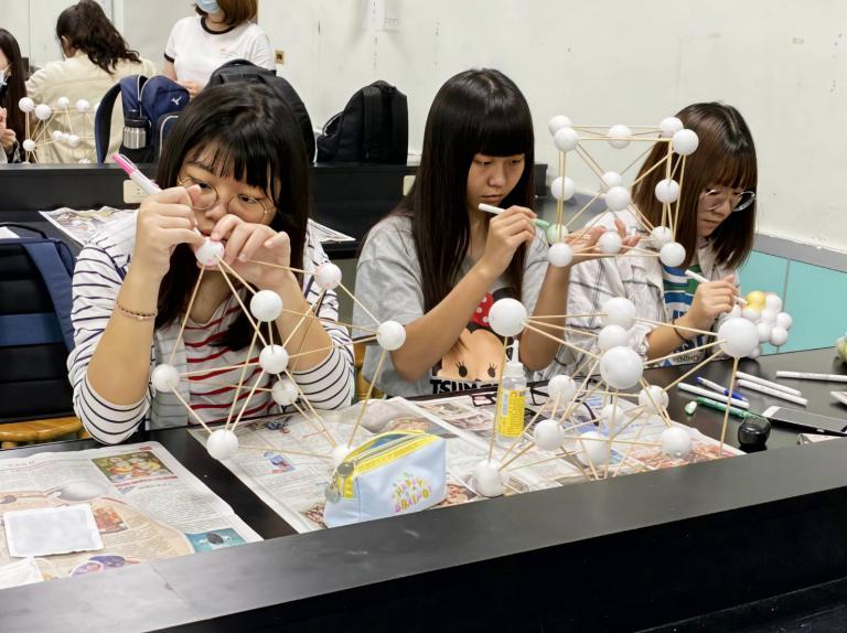 ▲材科系課程教學(初探材料的晶體結構模型製作)。(圖/義守大學提供)