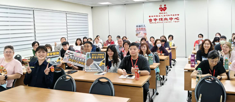 臺中市政府警察局第六分局日前前往台中捐血中心舉辦一場「貼近生活版」的交通安全宣導活動,利用中心員工每月集合受訓的時間,藉由一邊聊天、一邊示範,把最容易忽略、卻最關鍵的交通安全觀念輕鬆講給大家聽。現場不少員工邊聽邊點頭,直呼「原來很多習慣真的要改一改」。