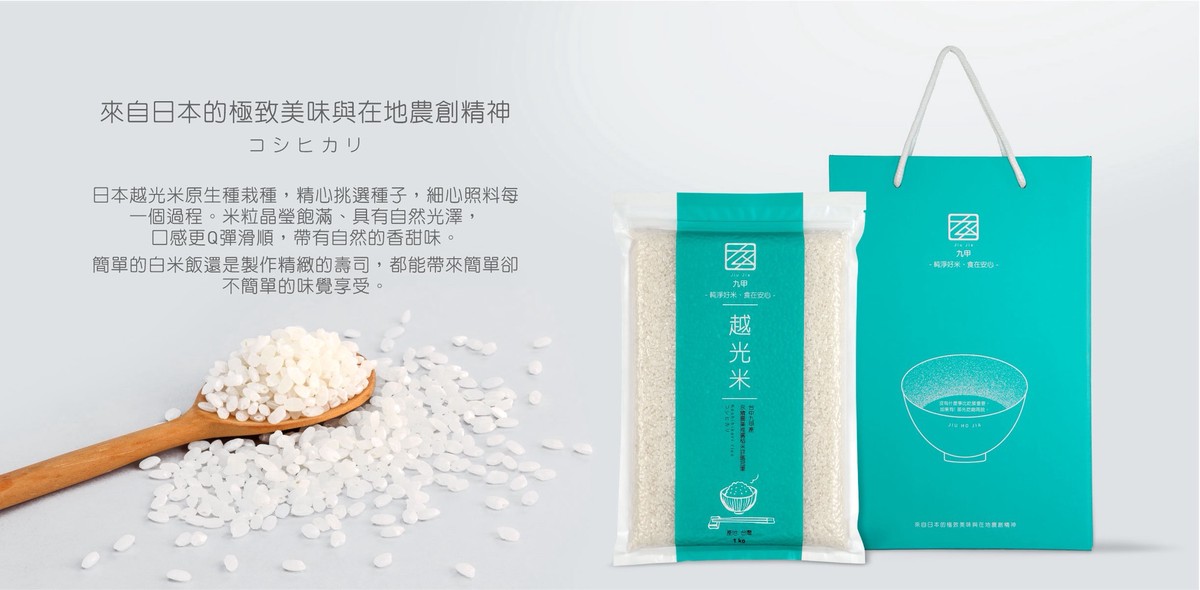 與市售常見的越光米不同,九甲所栽種的越光米來自約四十年前,阿公親自赴日農業交流所取得的原始越光穀種,這個稀有品種的米,煮好色澤度光亮、口感較Q彈、帶有香氣,單吃飯還有有微甜的口感。其產量更是稀少,相較於一般米種(臺南十一號)產量少約二至三倍,因此價格略高但品質絕對物超所值。