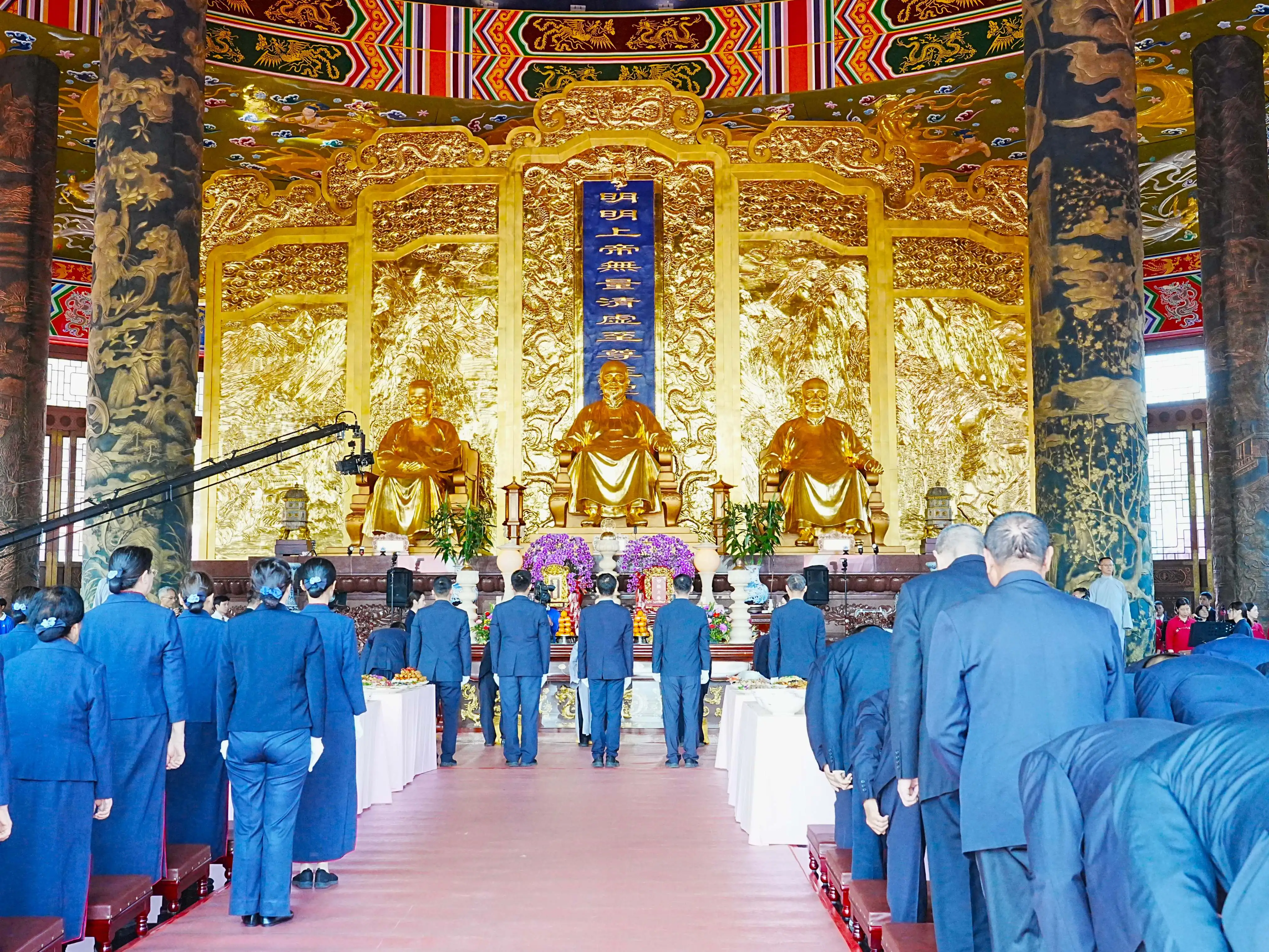 寶光崇正道場樞紐翁嵩慶帶領點傳師,率先向明明上帝與白陽三聖進行祭拜