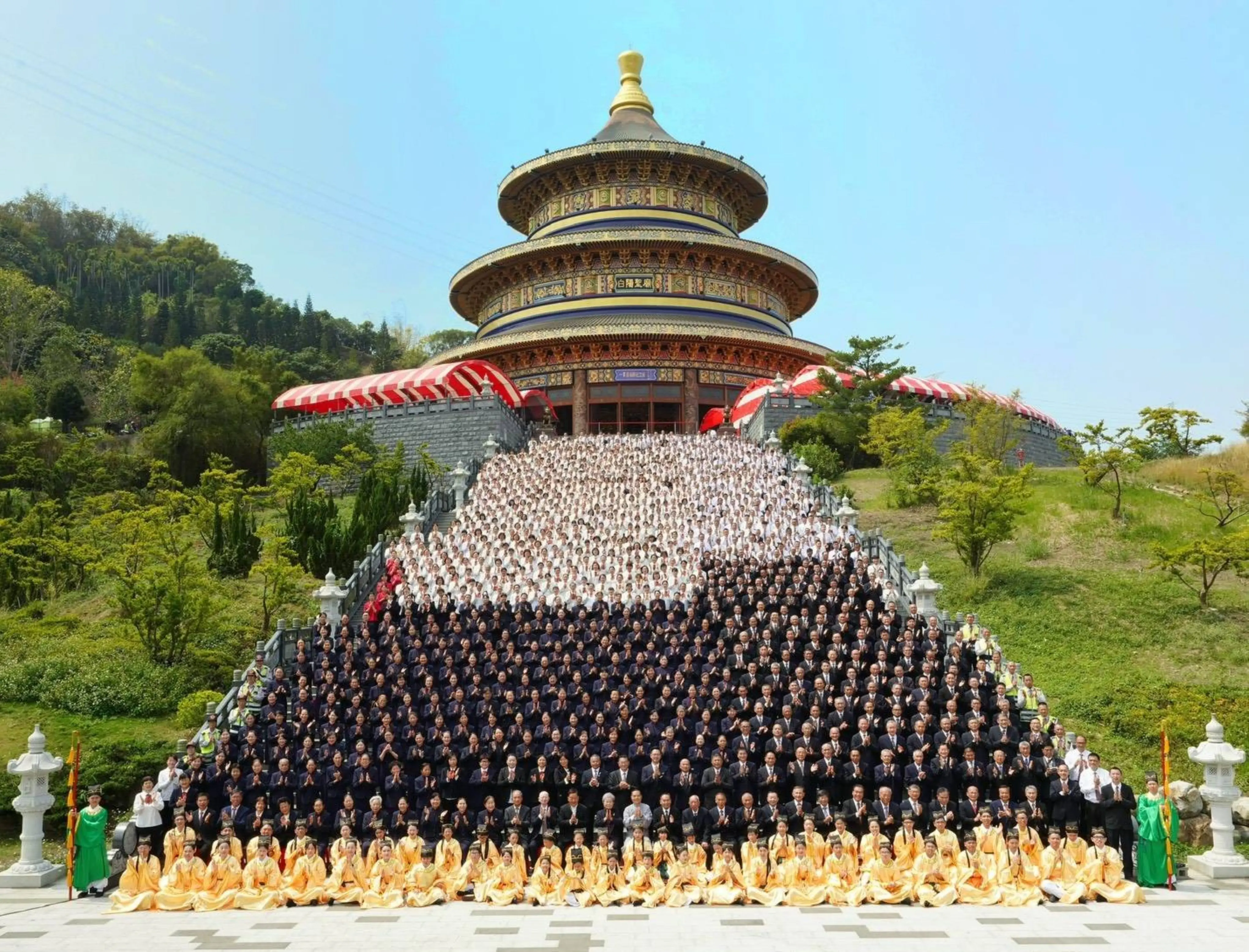 民政局補充,霧峰金陵山為台中重要宗教文化地標,園區融合五大宗教特色與三大主題建築,展現多元信仰共融的人文風貌。其中白陽聖廟以天壇意象打造,建築氣勢恢宏、格局莊嚴,象徵一貫道道統精神與文化傳承,並融入精緻書法與彩繪藝術,細節處處展現匠心之美;整體園區依山勢而建,環境清幽開闊,兼具宗教、文化與觀光價值,已成為民眾心靈沉澱與文化體驗的重要場域,歡迎民眾到訪霧峰順道暢遊金陵山白陽聖廟,近距離感受天壇大器莊嚴的建築之美。
