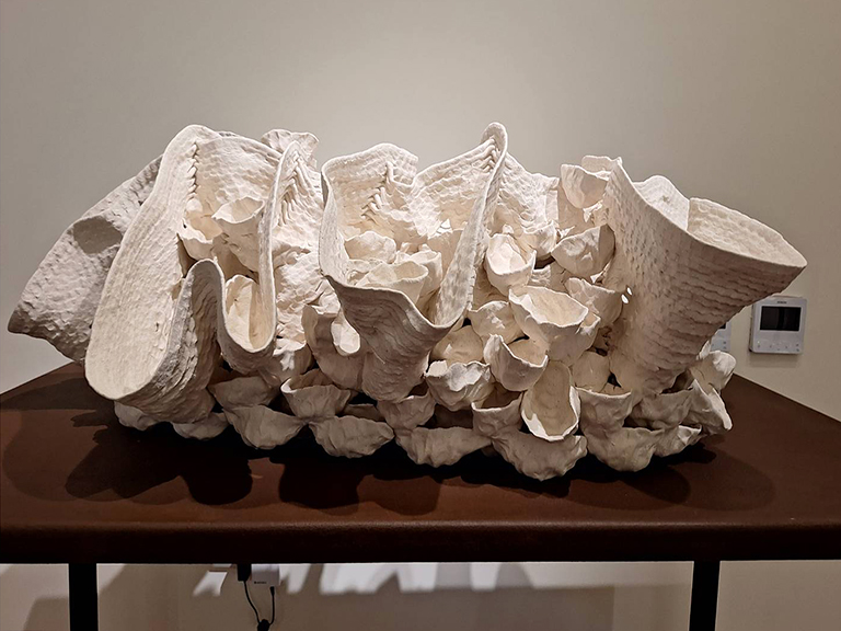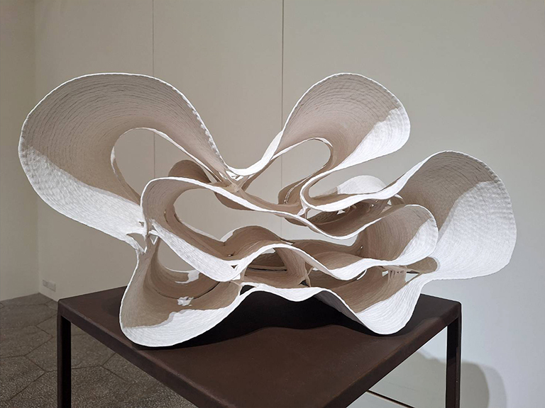 ▲徐永旭僅憑雙手推疊、塑形極大極薄的陶作品。