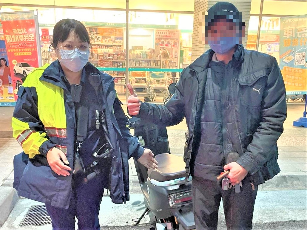 警方得知車牌後,通知值班同仁協助調閱路口監視器,確認該車尚未有人騎走,加上鑰匙一直在男子身上,侯員猜測男子應該是忘記停在何處,於是沿著忠孝路段往東找尋,皆未有所獲,而後再繼續擴大範圍,往吳鳳北路的方向找尋,結果在中山路與吳鳳北路口發現男子的愛車,隨即通知值班同仁聯繫男子到場確認。