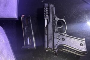 【民眾網編輯方笙楠臺北報導】臺北市士林分局社子派出所警員3月底於延平北路6段巡邏時,使用智慧警勤輔助系統辨識出自小客號牌異常,遂示意駕駛停車接受盤查,然該車拒檢並加速逃逸,社子派出所員警遂於後方尾隨待機至延平北路7段巷內,見時機成熟,趨前喝令下車,最終成功制服犯嫌,並於駕駛包包內查獲改造手槍1把、海洛因及安非他命等證物,詢後依槍砲彈藥刀械管制條例、毒品危害防制條例、公共危險案移送士林地方檢察署偵辦。