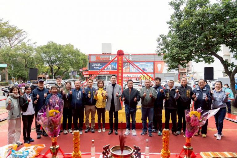 竹北市公所投入2,798萬元進行縣福園公園全面翻新,今日舉行動土典禮,市長鄭朝方、市民代表會主席林啟賢、副主席葉信輝、多位市民代表,以及多位里長與理事長,不畏寒風皆親自出席見證公園新生。