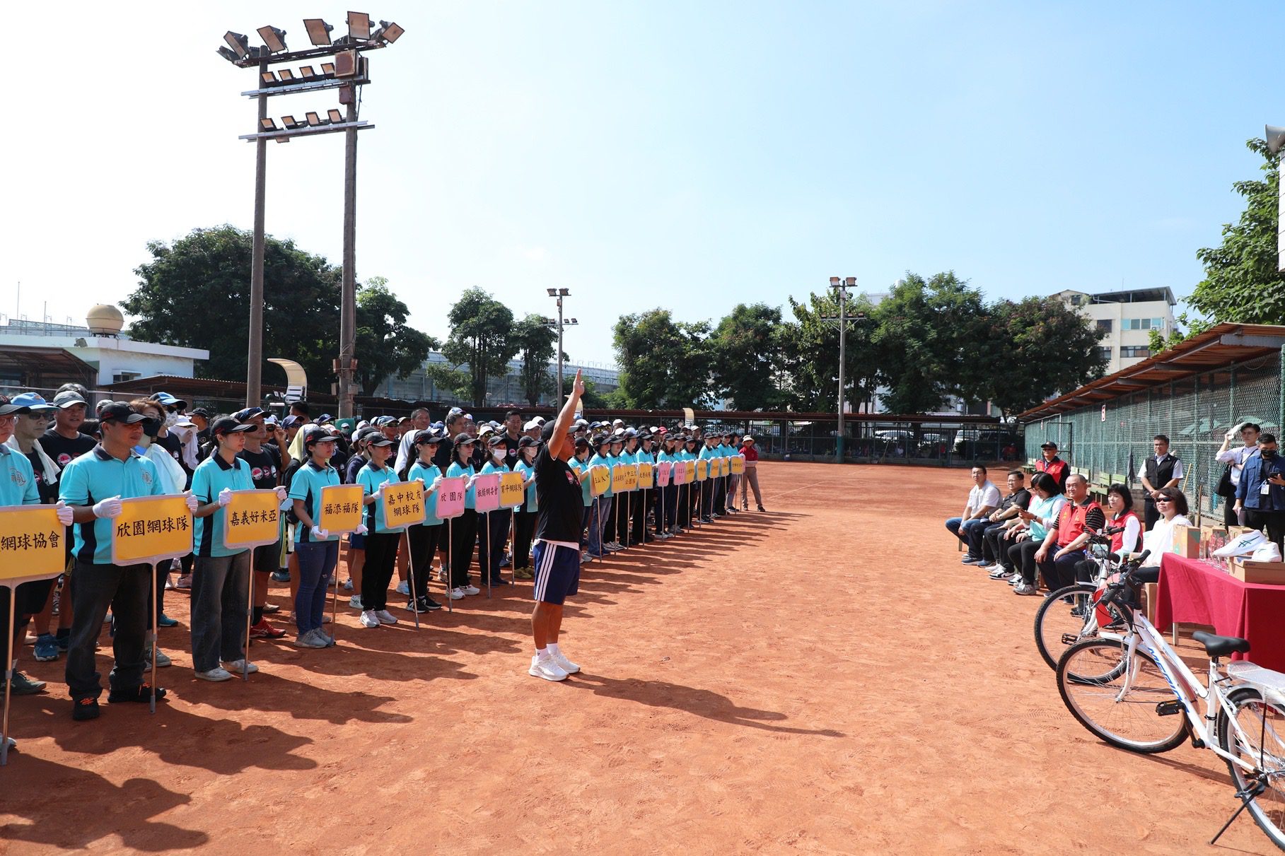 2025第17屆諸羅「世澤盃」全國壯年網球錦標賽昨(15)日上午於嘉義市立網球場熱鬧開幕,吸引全國近500位網球好手齊聚嘉義市競技交流。現場氣氛熱烈,參賽選手精神奕奕,展現壯年球友對運動的熱情與活力。市長黃敏惠到場為選手們加油打氣,並歡迎大家來嘉義揮拍較勁、切磋球技,共享運動樂趣。