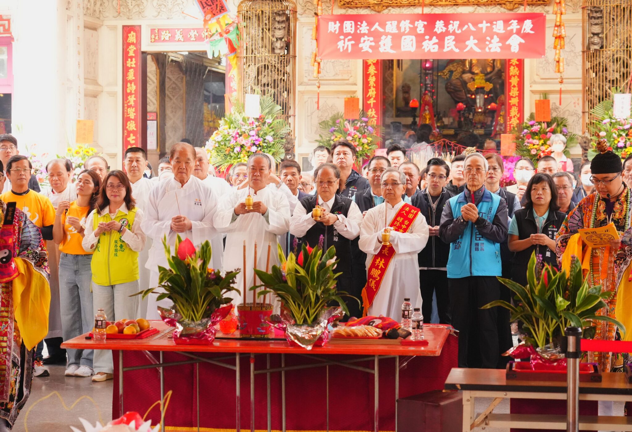 台中市醒修宮創建於民國34年,主祀關聖帝君,香火鼎盛,為地方重要信仰中心,今年適逢建宮80週年,廟方自今(13)日起一連三天舉辦「祈安護國祐民大法會」,恭請眾神為地方消災解厄、植福保泰。民政局長吳世瑋代表市長盧秀燕出席米龍開光大典,依循傳統科儀率眾團拜祈福,祈求關聖帝君庇佑市政順利、市民平安健康,並感謝廟方長年對地方的貢獻,祝福醒修宮香火鼎盛、宮務昌隆。