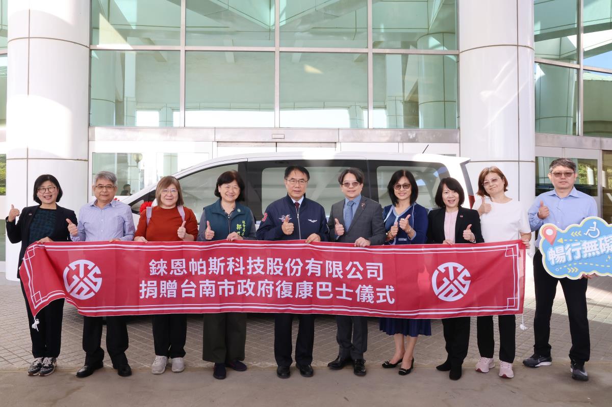 記者黃冠源/台南報導 錸恩帕斯科技股份有限公司捐贈一輛復康巴士回饋地方,(31)日於永華市政中心舉行捐贈儀式,由市長黃偉哲代表受贈並致贈感謝狀,感謝企業以實際行動支持市府照顧弱勢市民的施政理念。 黃偉哲表示,2025年歷經楠西地震及多起風災水災,市府投入大量經費救災,也看見社會處處有愛心。台南現有155輛復康巴士,至11月底已服務逾28萬人次,使用頻繁、耗損大。感謝錸恩帕斯捐贈新車,協助年長者及行動不便市民就醫與生活所需,市府將持續結合民間力量,完善友善無障礙交通服務。 錸恩帕斯科技股份有限公司成立於2009年,深耕製程管路設計與工程管理服務,並投入半導體設備相關零組件領域,曾榮獲2025年國家磐石獎,並入圍經濟部節能標竿優良廠商。企業長期投入公益行動,包含捐助永康、新化等8所國中小獎助學金、參與花蓮賑災、支持世界展望會及捐血活動,展現善盡社會責任、回饋地方的最佳典範。 市府說明,目前全市共有155輛小型及一輛中型復康巴士,每年提供逾30萬趟次服務,多數車輛來自民間捐贈。市府將妥善運用此次捐贈車輛,汰換使用年限逾10年的老舊車輛,確保行車安全。社會局提醒,復康巴士服務時間為每日上午6時至晚上11時,民眾可撥打06-2975678(永華、溪南區)、06-6328899(溪北區)或透過Line官方帳號(LINE ID:@tnrehabus)預約。